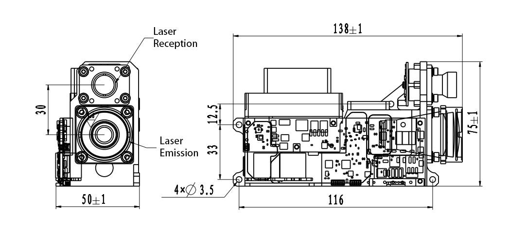 c) Ten moduł Rangefinder jest nieistniejący, pamiętaj, aby użyć wilgotności względnej środowiska jest mniejsza niż 80%i upewnij się, że stosowanie czystości środowiska i higieny, aby nie uszkodzić lasera.
